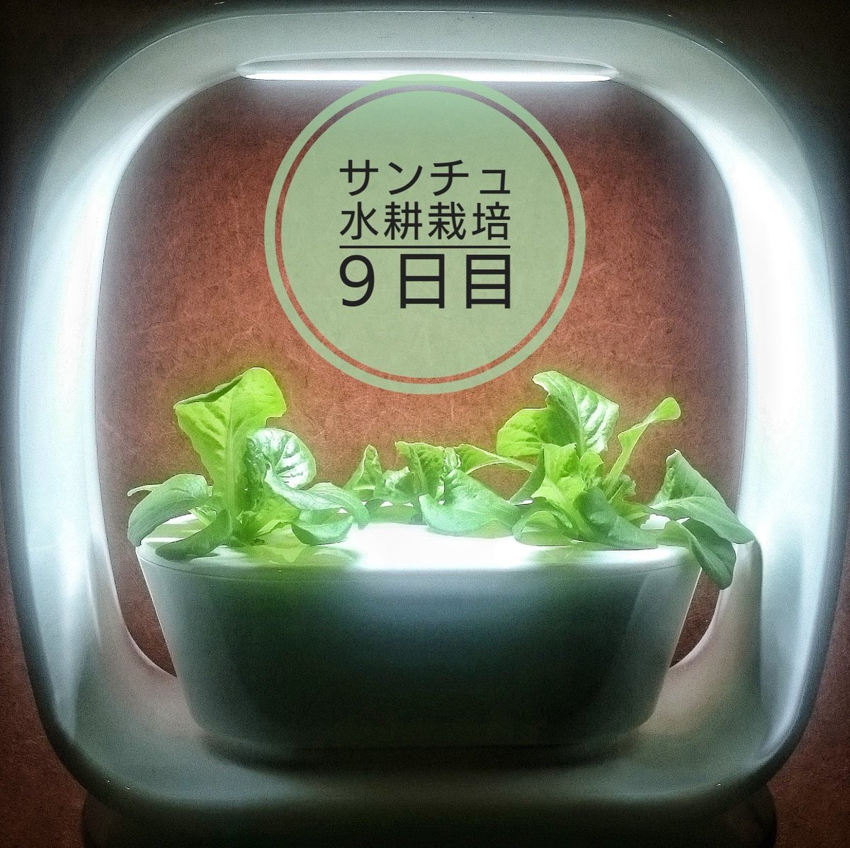 養水とLEDの光で順調に育ってます。あと2週間ぼどで収穫予定🎵