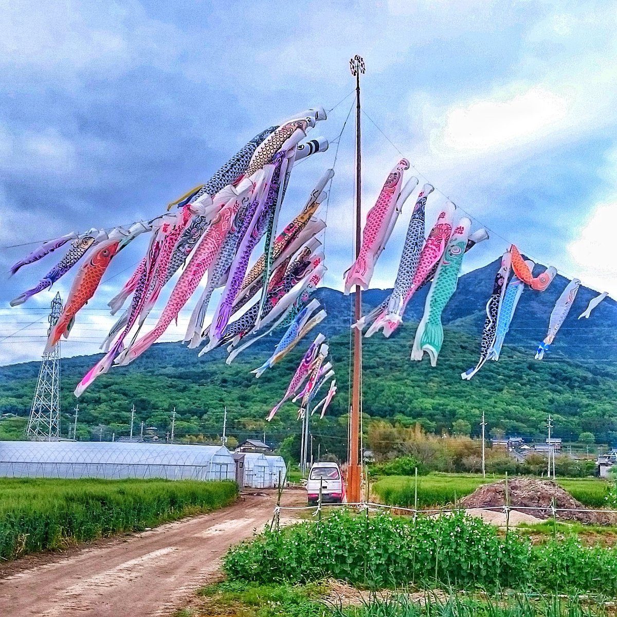 昨日のお休みはれんが亭がお世話になってる米農家 夢田ファームさんの鯉のぼりを見てきました。🎏 30匹位山を背に泳いでます!
