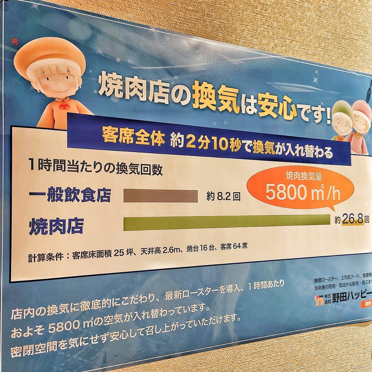 れんが亭は無煙ロースター設置店、常時換気で密閉を気にせず焼肉をお楽しみ頂けます。